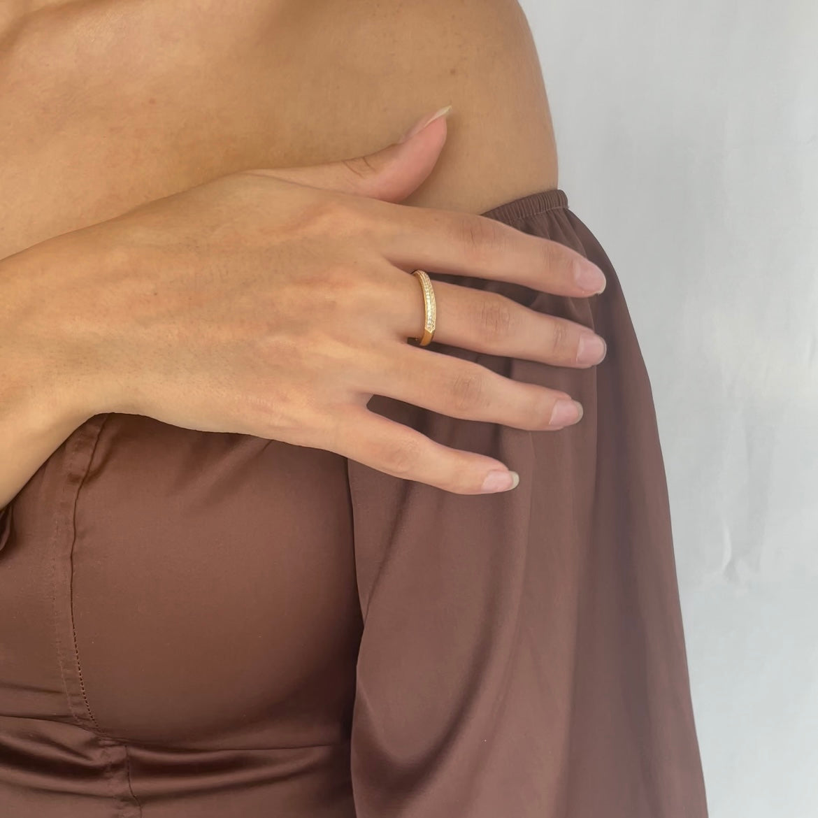 The Cuba ring is a sparkling eye-catcher and the perfect gift for special moments. With its modern design and clear lines, it is nevertheless completely timeless. The double-row band ring is set with round cubic zirconia that reflect the light beautifully. Each ring is lovingly handcrafted and made of high-quality material that is durable and resistant.