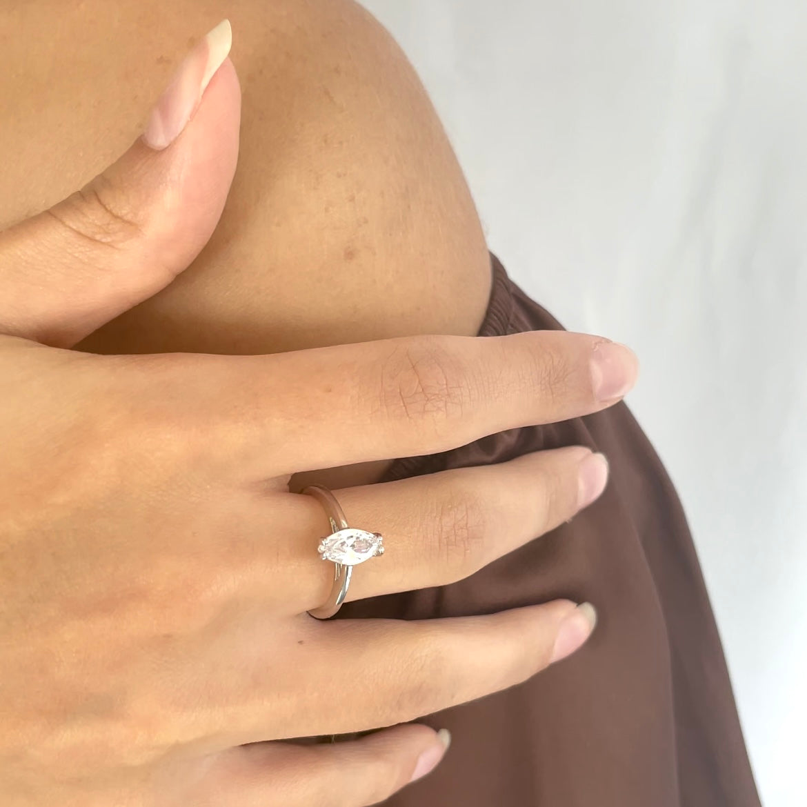 La bague Marble est un bijou fascinant, inspiré par la beauté naturelle. L'étincelante pierre de zirconium taille marquise au centre de l'anneau est le point fort du design et confère au bijou une élégance intemporelle, tandis que ses lignes épurées et modernes ont été savamment conçues pour charmer. La bague est en métal de haute qualité et a été fabriquée à la main de manière magistrale.