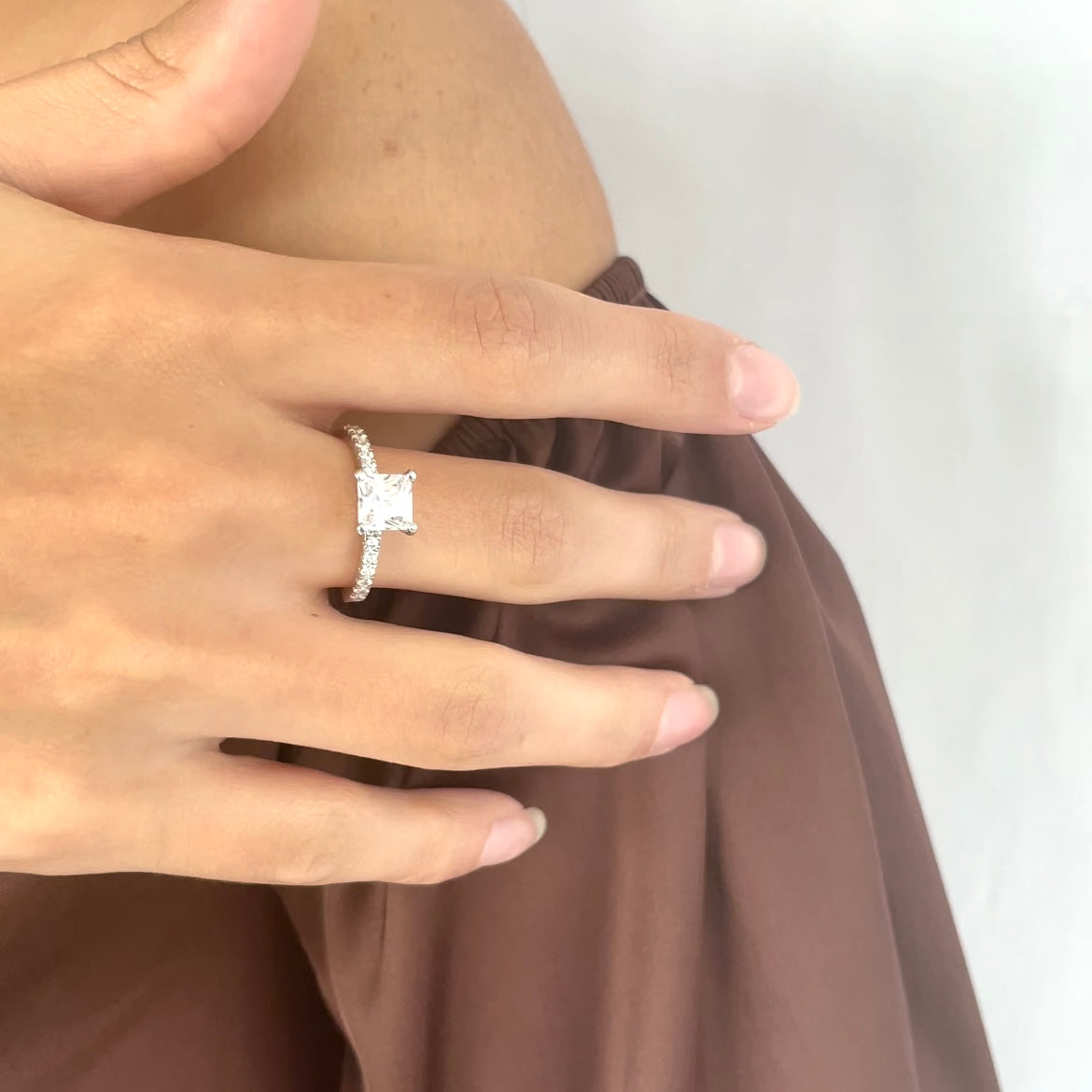 L'anello Pacific è un gioiello unico che simboleggia la ricerca della felicità e dell'amore eterno. L'anello è fatto per durare per sempre ed è caratterizzato da una pietra di zirconia dal taglio princess che costituisce il centro dell'anello. La corona e la fascia dell'anello sono incastonate con scintillanti pietre pavé che esaltano lo scintillio della pietra zirconia cubica. L'anello Pacific è una scelta perfetta per le occasioni speciali o per dare un tocco in più al vostro abbigliamento preferito.